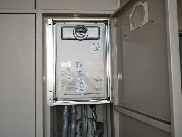 本日は リンナイ ガス給湯器 クイックオート ジェットフロー 16号 メーターボックス内設置形 前方排気 ( RUJ-V1611T ) の 取替工事 施工 事例報告をさせて頂きます。