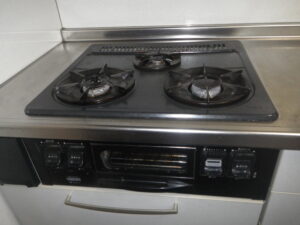 ハーマン 3口 ガス ビルトインコンロ ( DG3295 ) から ノーリツ 3口 ガス ビルトインコンロ メタルトップ( N3GT2RVQ1 ) へ取替工事をさせて頂きました。