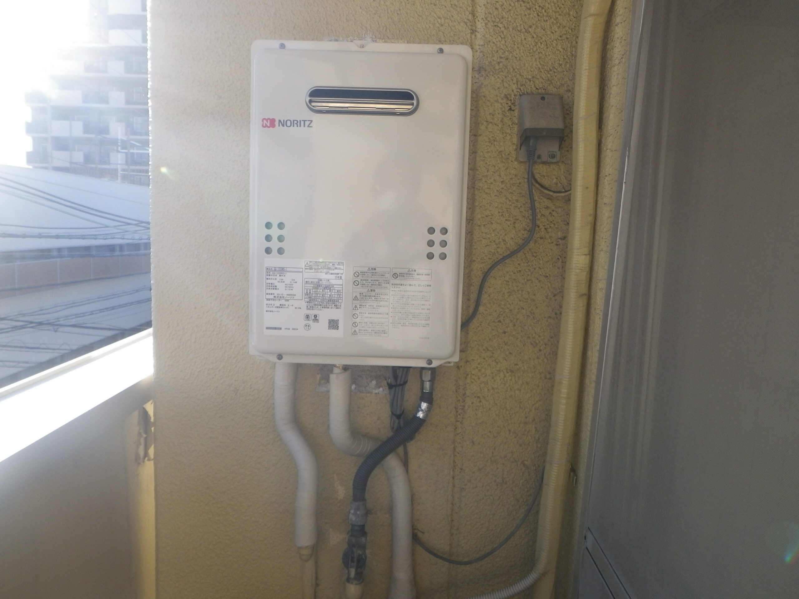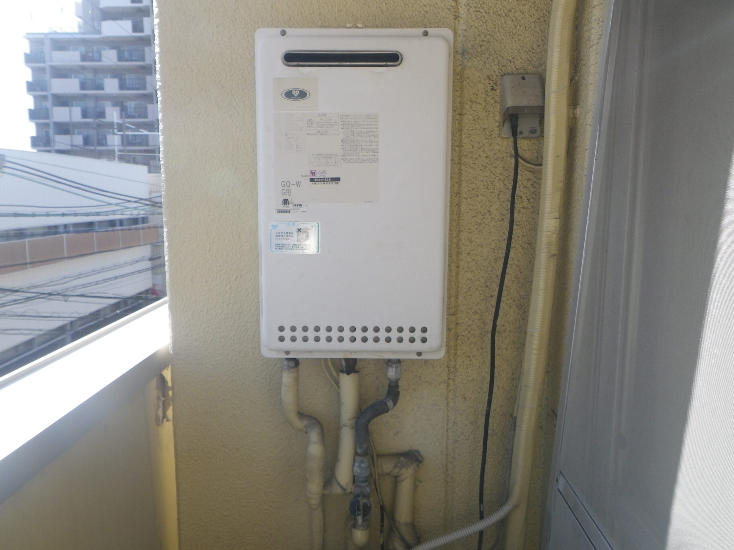 本日は 大阪ガス ガス給湯器 34-335 から ノーリツ ガス給湯器 16号 PS標準設置形 ( GQ-1639WS-1 )の 取替工事 施工 事例報告をさせて頂きます。