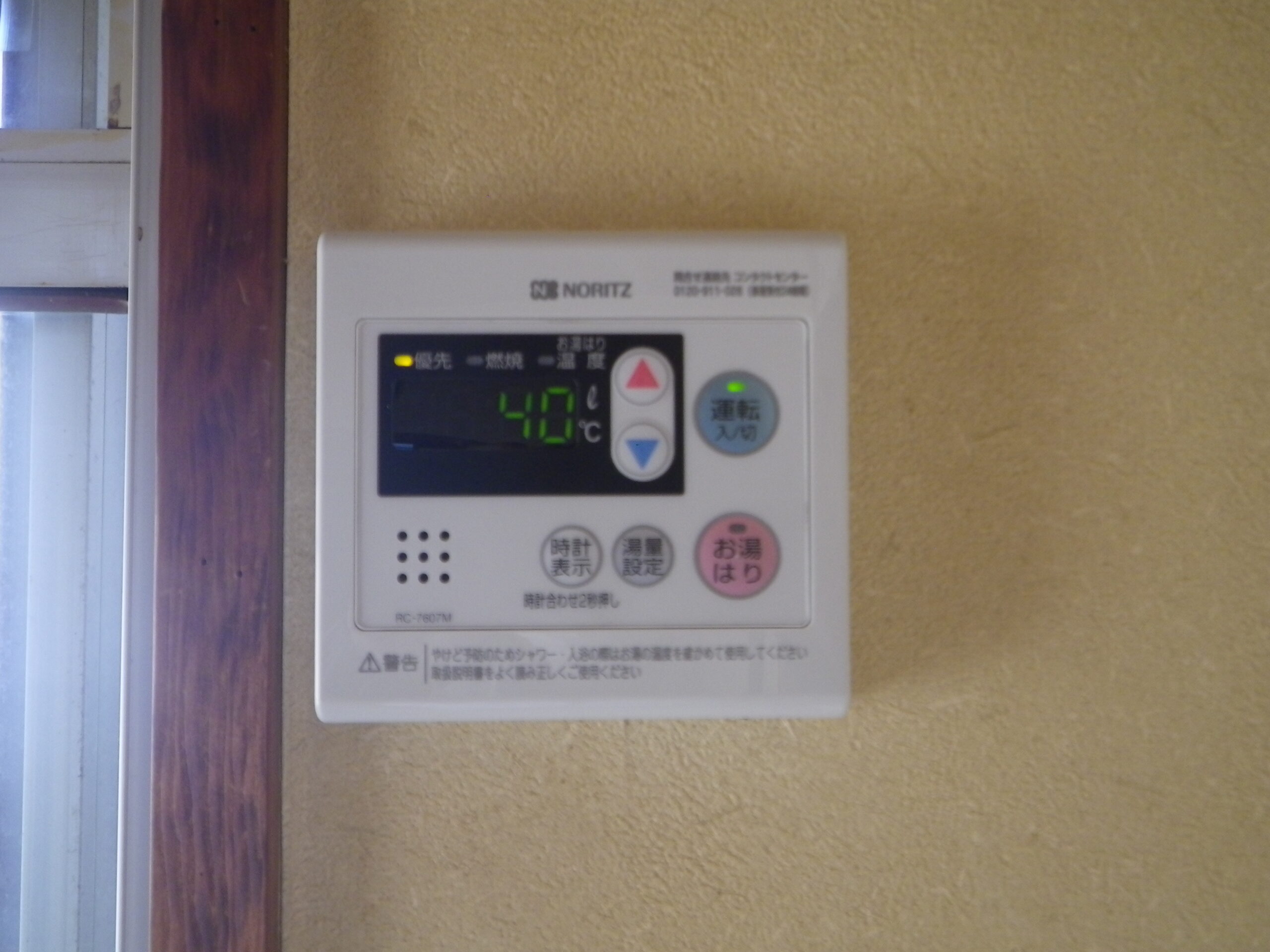 台所リモコン 取替後ノーリツ 16号 ガス給湯器 標準設置形 ( GQ-1639WS-1 )へ取替工事の写真です。台所リモコンは現行品でしたが年数もたっているため交換になりました。