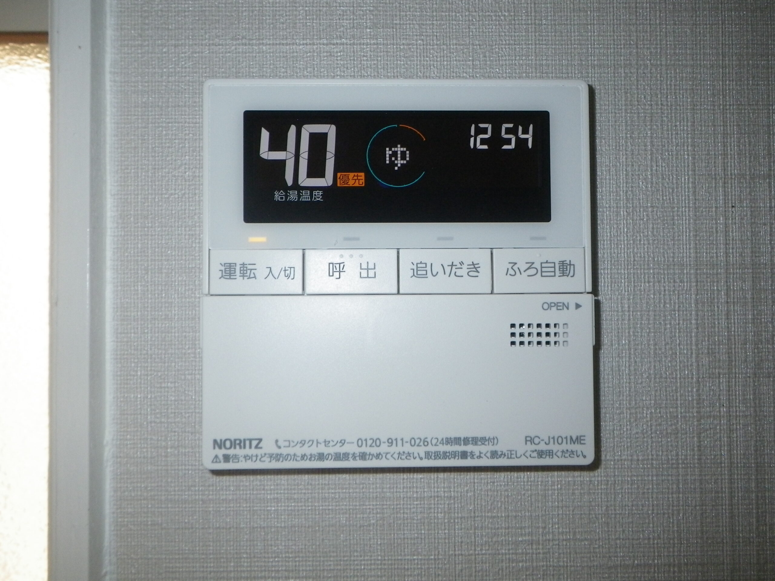 浴室リモコン 取替前大阪ガス 24号 ガスふろ給湯器 屋外壁掛設置形 セミオート ( 135-N500 ) GTH-C2441SAWXDから エコジョーズ ノーリツ 24号 ガスふろ給湯器 屋外壁掛型 セミオート ( GT-C2472SAW BL ) へ取替工事をさせて頂きました。
