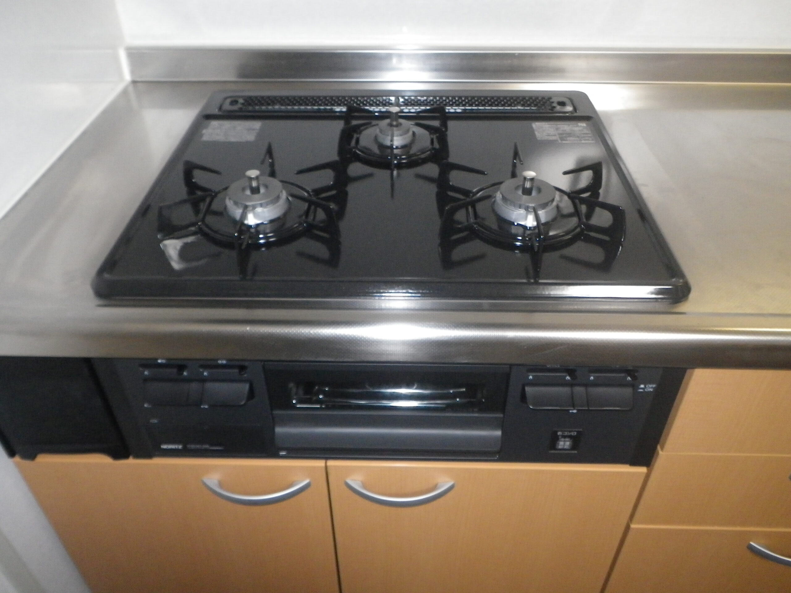 ノーリツ 3口 ガス ビルトインコンロ ( NRDG3295NQ1 ) から ノーリツ 3口 ガス ビルトインコンロ メタルトップ( N3GT2RVQ1 ) へ取替工事をさせて頂きました。