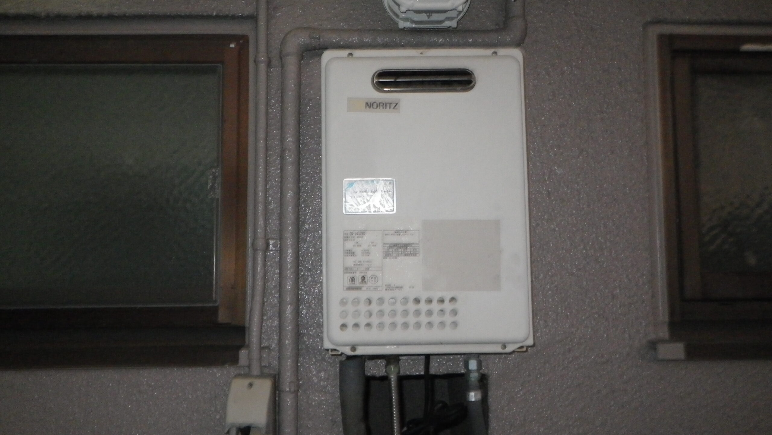 ノーリツ 16号 ガス給湯器 屋外壁掛設置形( GQ-1639WS-1 )へ取替工事の写真です。
