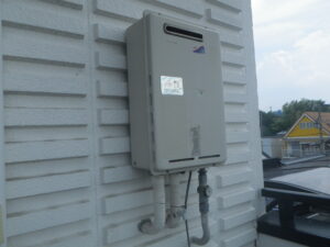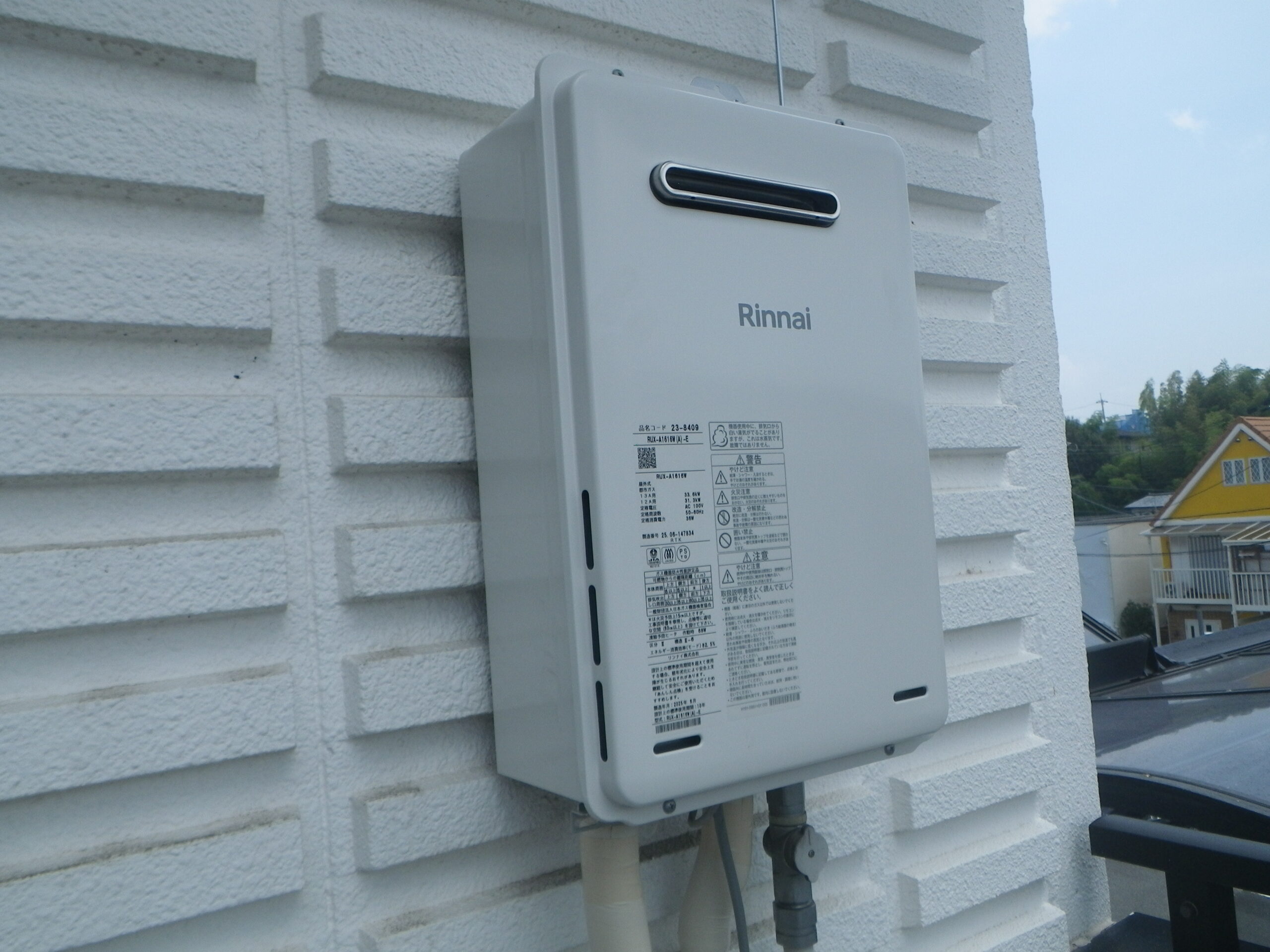 リンナイ 16号 ガス給湯器 PS標準設置形( RUX-A1616W(A)-E )へ取替工事の写真です。