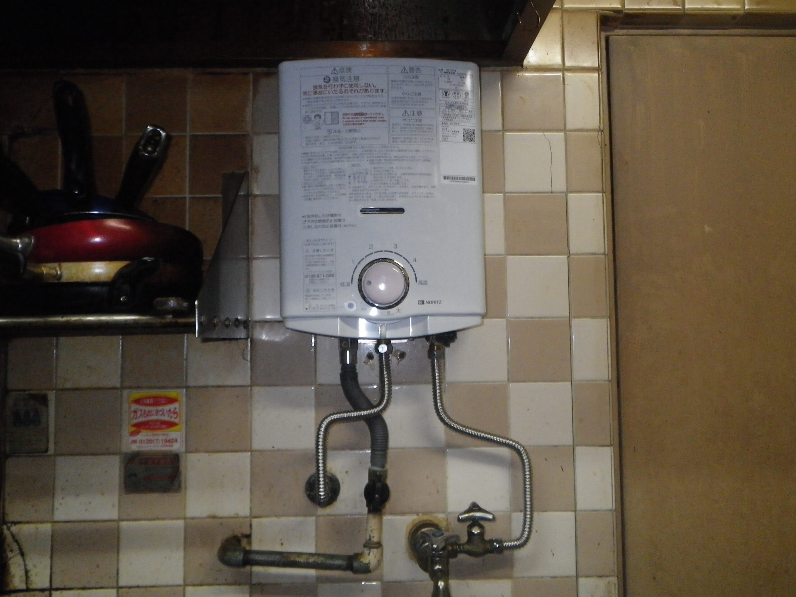 ノーリツ 先止め湯沸かし器 取替後ノーリツ 5号 瞬間湯沸器( GQ-551W ) の取替工事後の写真です。