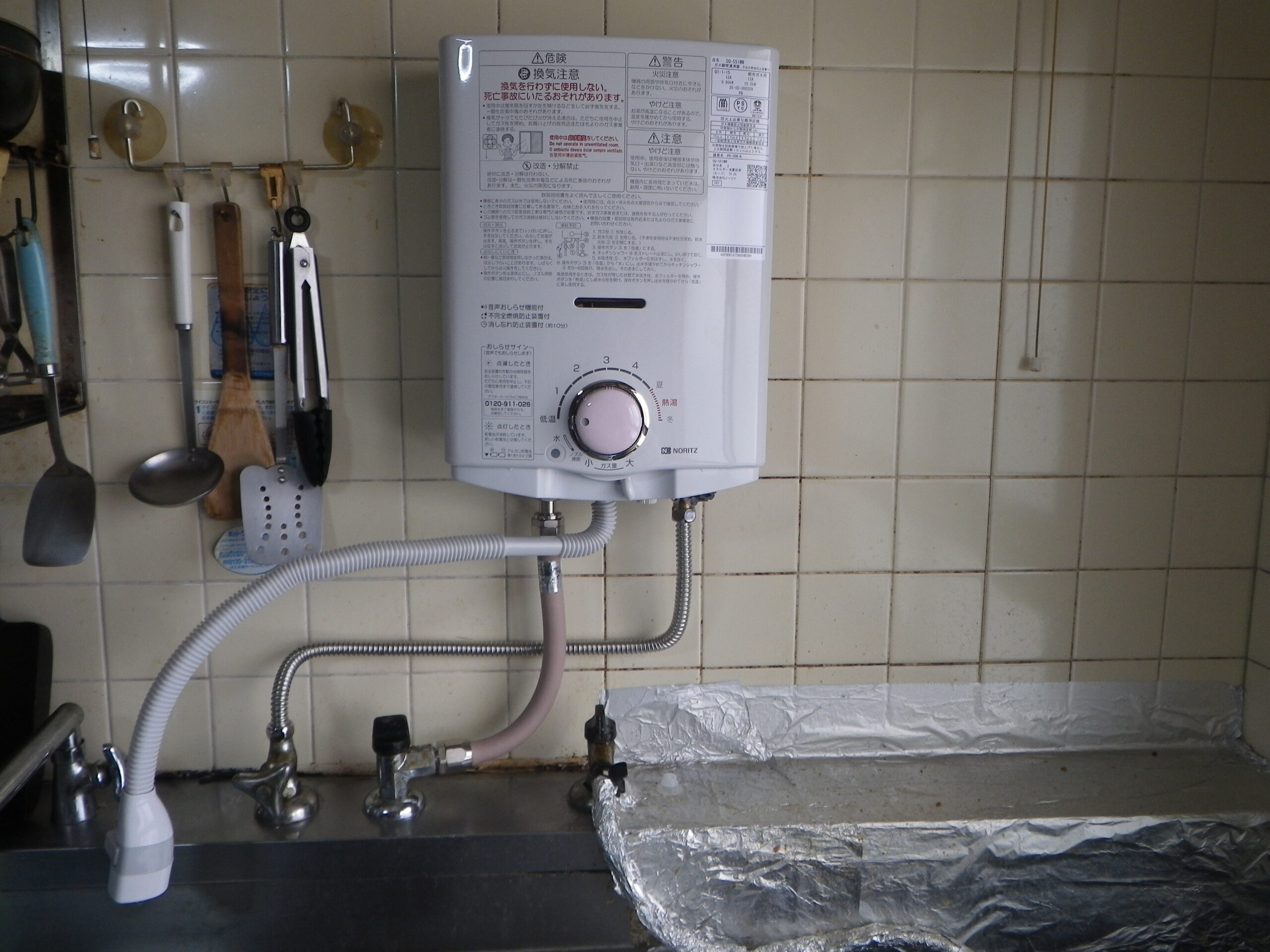 大阪ガス 33-055 YR-526 瞬間湯沸器 から ノーリツ 5号 台所専用 小型湯沸器 ( GQ-551MW )の 取替工事 施工 事例報告をさせて頂きます。