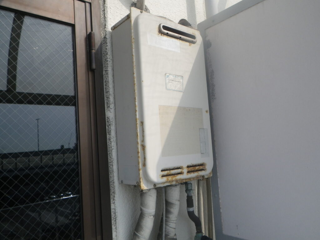 日立ハウステック 16号 ガス給湯器 屋外設置 ( KS-164LBH ) から ノーリツ 16号 ガス給湯器 屋外壁掛設置形 ( GQ-1639WS-1 ) へ取替工事をさせて頂きました。