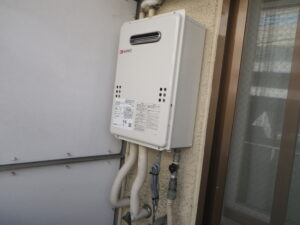大阪ガス 24号 ガス給湯器 屋外設置 ( 133-8100 ) から ノーリツ 16号 ガス給湯器 屋外壁掛設置形 ( GQ-1639WS-1 ) へ取替工事をさせて頂きました。