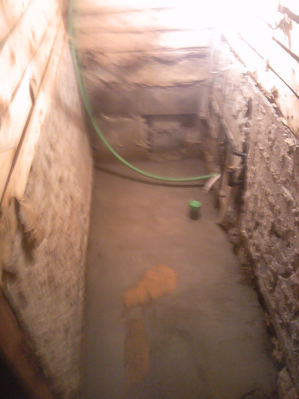 写真はユニットバスの寸法に合わせて給水、給湯、追い炊き、排水を取り出し、土間をならした後です。