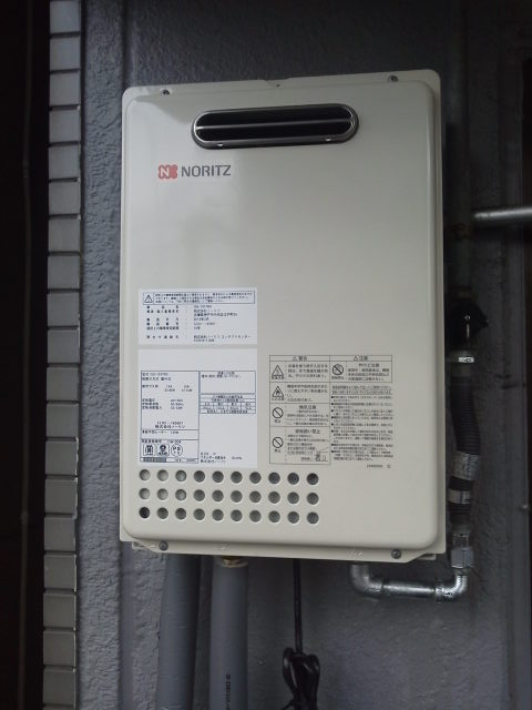 ノーリツ ガス給湯器 GQ-1637WS へ取替工事後の写真です。