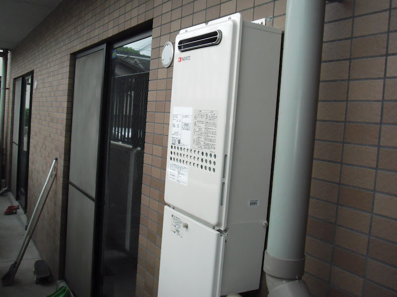ノーリツ 屋外設置型高温差し湯タイプ(GQ-2427AWX)へ取替工事後の写真です。