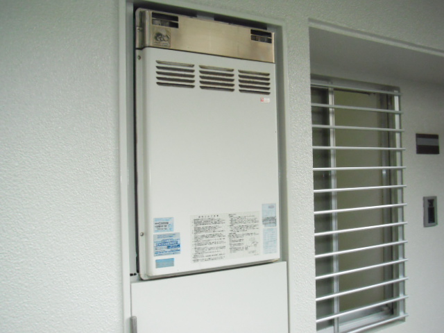 ガス給湯器の本体がコンパクトになっている為、オプションの枠を取り付けています。