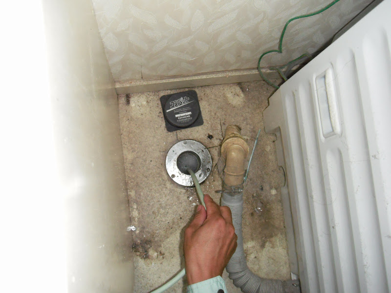 屋内の洗浄を終わらせてから、屋外の掃除口からも洗浄作業をさせて頂きます。