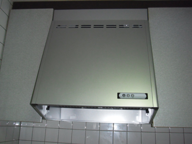 富士工業 キッチン 深型レンジフード プロペラファンタイプ (FVM-6061L-SI)への取替工事後の写真です。