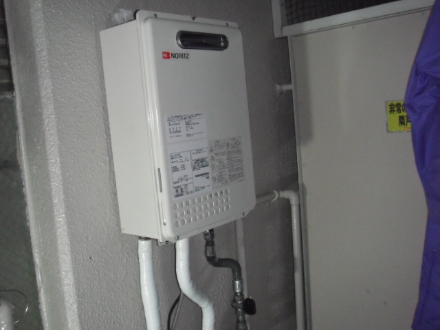 ノーリツ ガス給湯器 標準設置タイプ (GQ-1637WS)への取替工事後の写真です。