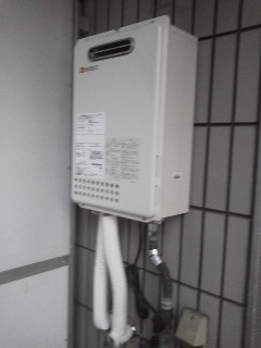 ノーリツ ガス給湯器 屋外設置型 GQ-1637WE へ取替工事後の写真です。