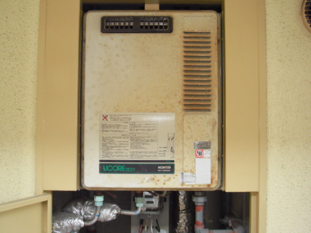 ノーリツ ガス給湯器 標準設置タイプ () から ノーリツ ガス給湯器 屋外設置タイプ (GQ-1637WS)へ取替工事をさせて頂きました。