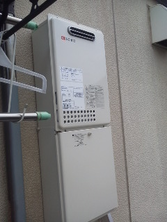 ノーリツ ガス給湯器 屋外設置型 GQ-1637WS へ取替工事後の写真です。