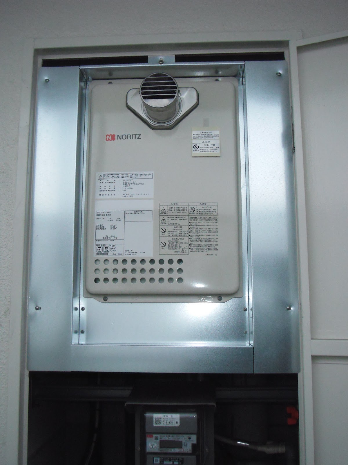 本日は ノーリツ 16号 ガス給湯器 扉内設置型 前方排気 (GQ-1637WSーT)の 取替工事 施工 事例報告をさせて頂きます。