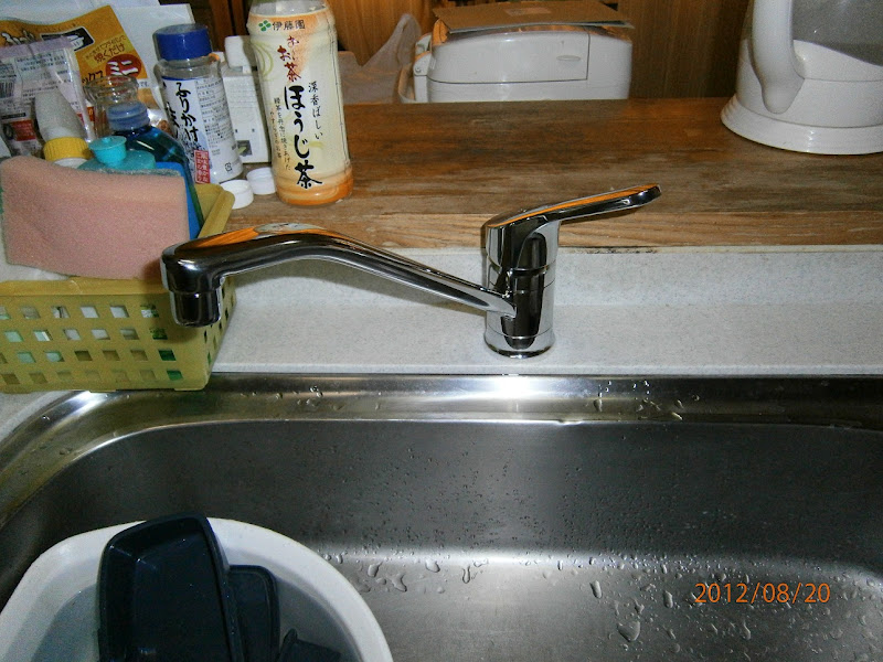 新しい水栓は、上げ吐水です。地震後から企画が変わっています。上から、何かが落ちてきても、水が出ないようにですよ。