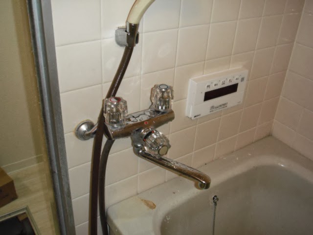TOTO 壁付け 2ハンドル シャワー水栓 ( ) から サンエイ 壁付け 浴室 シャワー水栓 ( SK-170 ) へ取替工事をさせて頂きました。