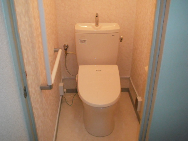 TOTO 便座 CS220BM SH221BAS パナソニック温水洗浄便座  (DL-WF40-CP)へ取替 工事後の写真です。
