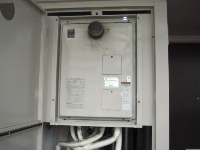 大阪ガスのカワックを取外し、電気の三菱乾燥機に取替をさせて頂いた為、ガス給湯器も暖房機能なしの高温差し湯タイプへの取替工事となりました。