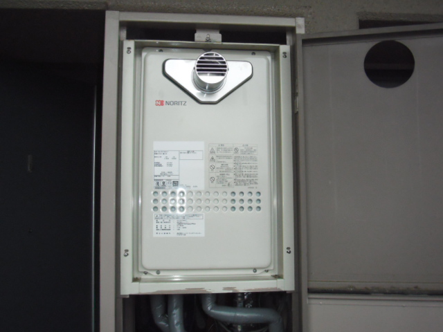 本日は ノーリツ ガス給湯器 20号 高温水供給方式 扉内設置形 前方排気 ( GQ-2027AWX-T )の 取替工事 施工 事例報告をさせて頂きます。