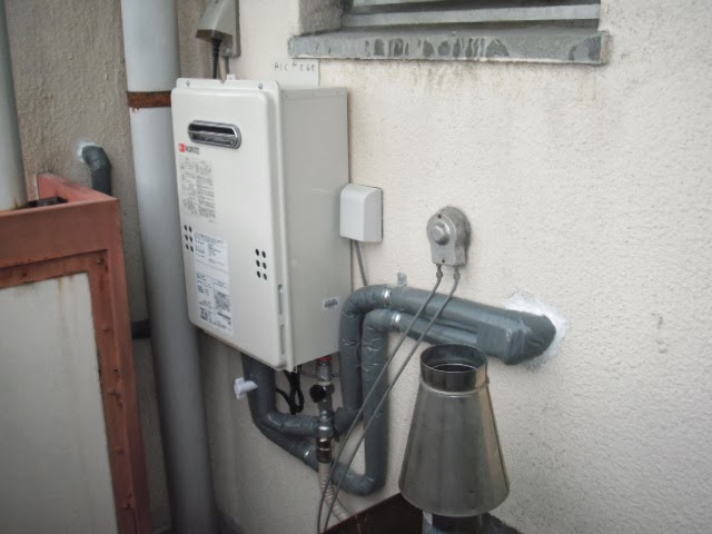 本日は ノーリツ ガス給湯器 屋外設置形 ( GQ-1639WS ) と イナックス サーモスタット シャワー水栓 新設工事 の 取替工事 施工 事例報告をさせて頂きます。