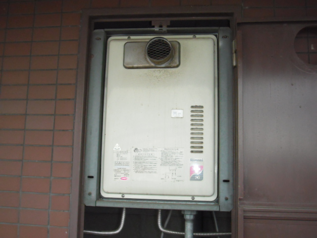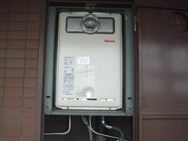 本日は、リンナイ 16号 ガス給湯器 PS扉内設置形 前方排気 RUX-A1610T-E の 取替 工事 施工 事例報告です。
