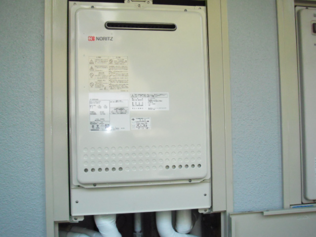 ノーリツ ガス風呂給湯器 屋外設置タイプ 20号 セミオート (GT-2050SAWX-2 BL)への取替工事後の写真です。