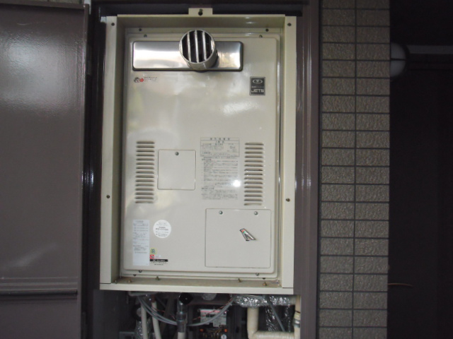 兵庫県芦屋市 マンション リンナイ ガス給湯器 高温差し湯タイプ 前方排気型 取替交換工事