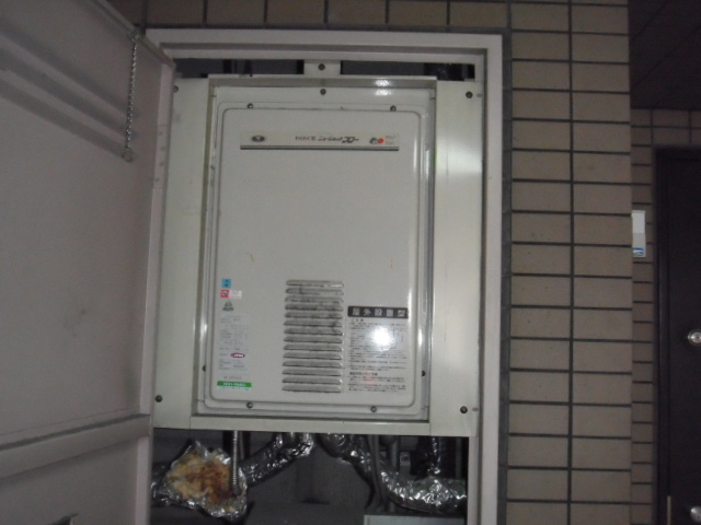 リンナイ ガス給湯器 高温差し湯タイプ 後方排気形 (RUJ-V1611B(A))への取替工事後の写真です。