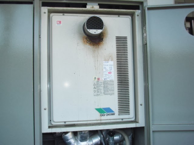 本日は ノーリツ ガス給湯器 高温水供給式24号 PSメーターボックス設置形 前方排気( GQ-2427AWX-T BL )の 取替工事 施工 事例報告をさせて頂きます。