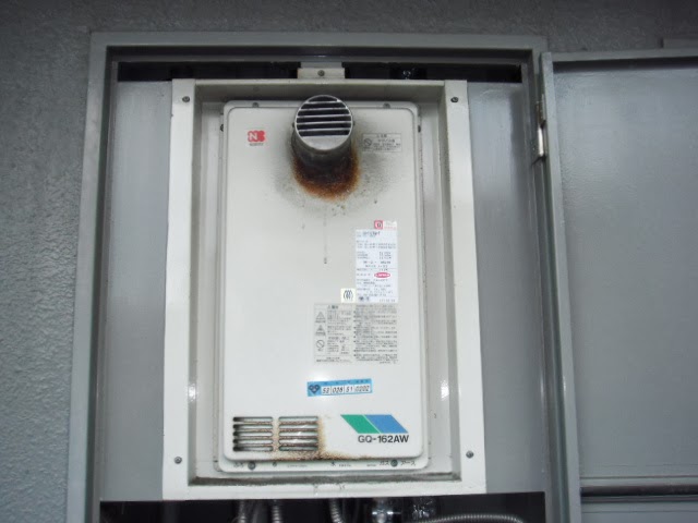 本日は リンナイ ガス給湯器 16号 高温水供給方式 扉内設置形 前方排気 ( RUJ-V1611T(A) )の 取替工事 施工 事例報告をさせて頂きます。